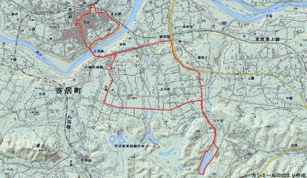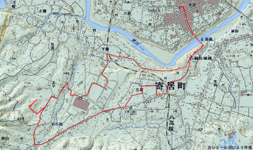 鉢形城址を抜けて、中間平へ登り、玉淀ダム方面へ降りるルートです。中間平からの関東平野を一望できる形式を楽しめます。