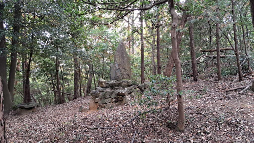 途中に大きな石碑があります。高根山の頂上はもう少し先です。