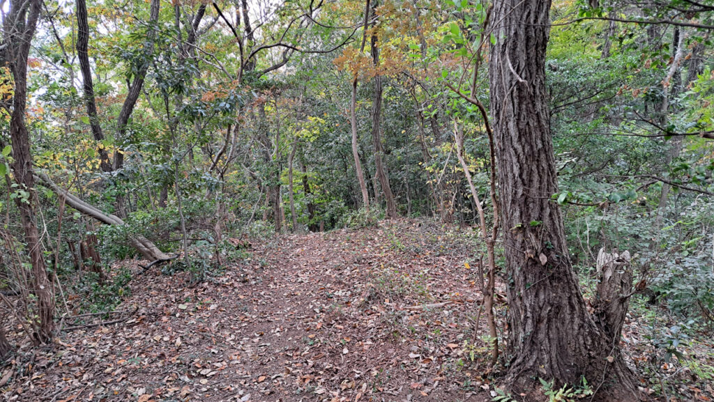寄居駅から一番近い鐘撞堂山への登り口です。比較的なだらかで登りやすいコースですが、ハイカーは少なく、季節によってはクモの巣が多いこともあります。