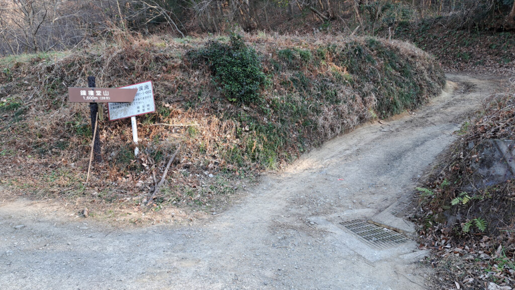 円良田特産センターから北に少し進んだところを右に曲がり、舗装された道を進むと登山道入り口に出ます。