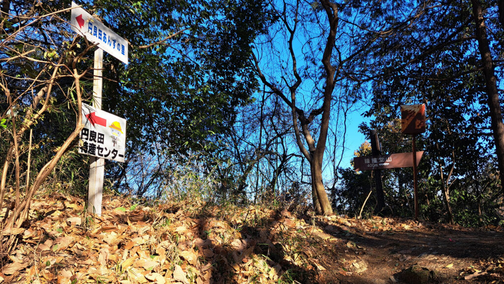 ここで谷津池北ルート、用土ルートと合流します。看板に従って鐘撞堂山頂上へ向かいます。