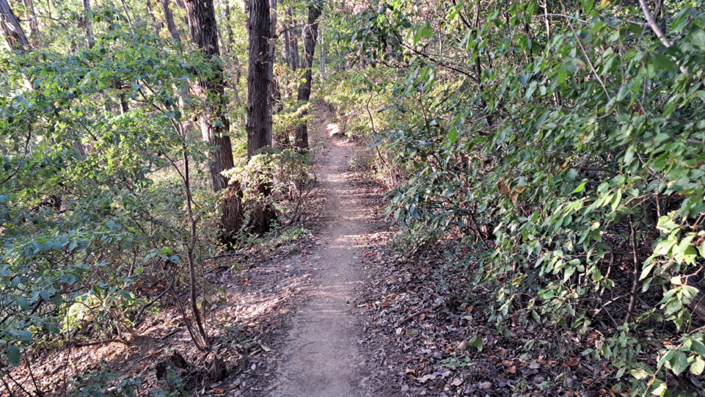 最初はよじ登るような短い急登があります。それを越えると走りやすい傾斜が続きます。
