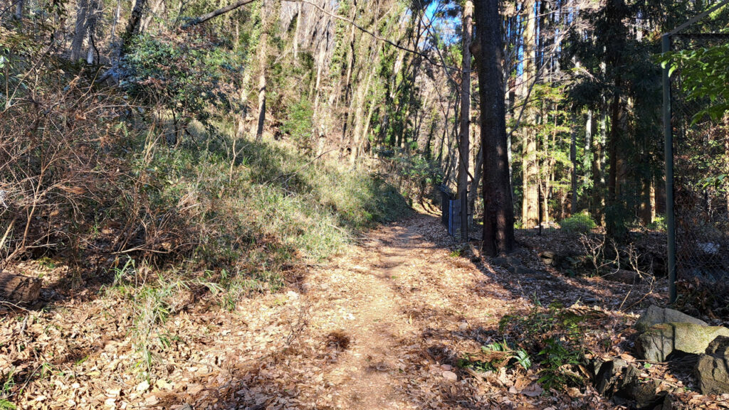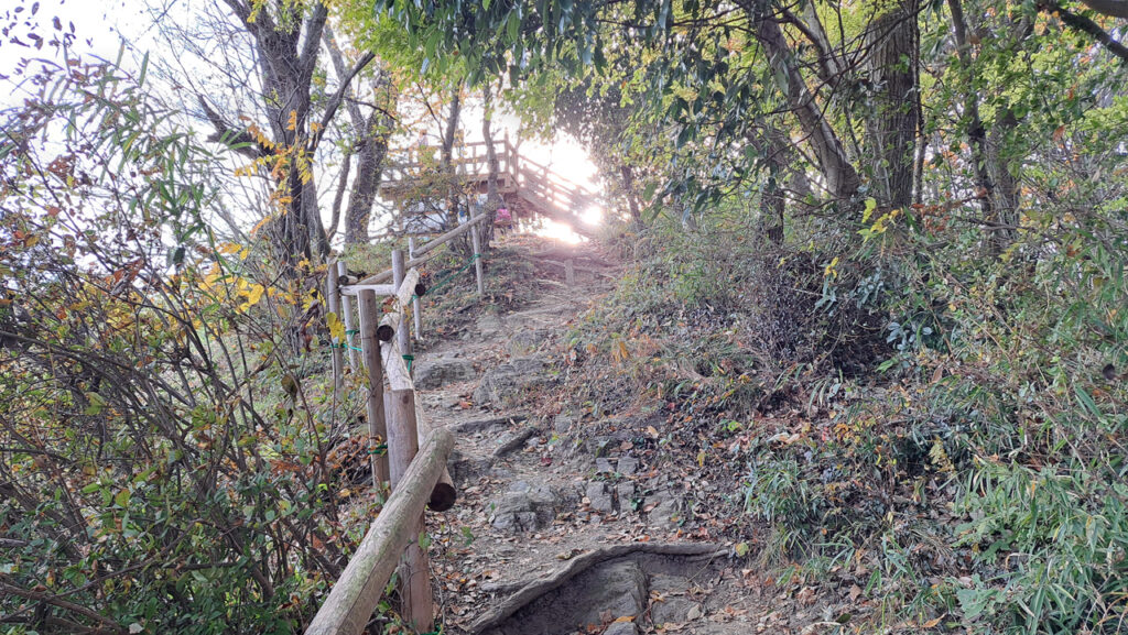 円良田湖ルートの出口を出て湖沿いの道を左に少し行くと少林寺裏山へ登る入り口が見えます。