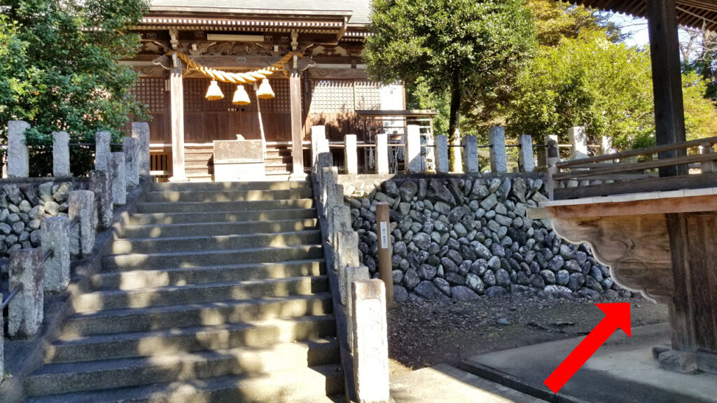 八幡神社の社の裏側に回り、登山道に入ります。八幡神社までの地図とGPSデータはこちらのページで確認してください。