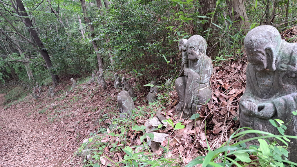 裏山の頂上から少林寺までの下りには五百羅漢があります。